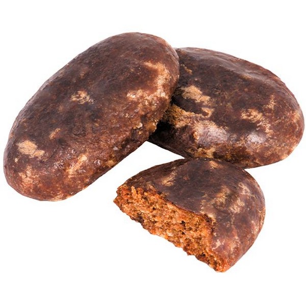 Пряник на ржаной муке с начинкой из абрикосового мармелада. Тесто мягкое, немного пикантное, с различимыми нотками корицы и гвоздики. Рекомендуем попробовать в сочетании с молоком.