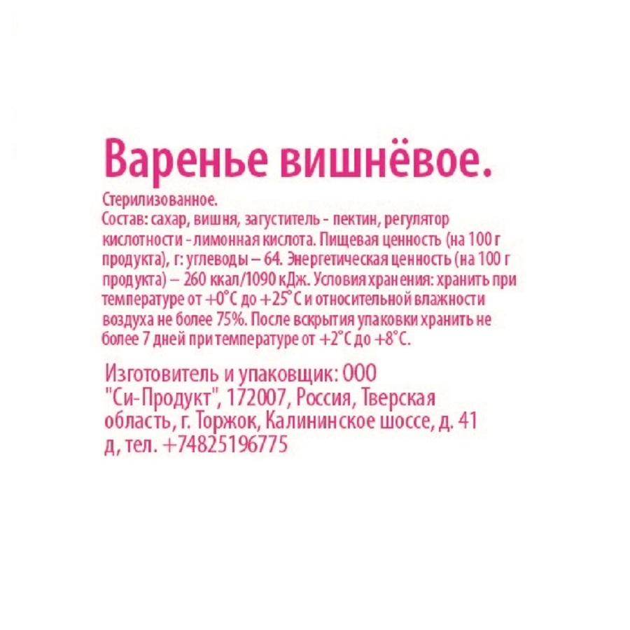 Вишневое варенье - восхитительный десерт, с насыщенным слегка терпким вкусом и ароматом. Только из отличного сырья получается вкусное варенье, и именно поэтому для нас собраны самые свежие и отборные ягоды, которые соответствуют самым высоким стандартам качества. Натуральный состав. Без консервантов, ароматизаторов, красителей. Бережная технология варки с сохранением витаминов и микроэлементов.